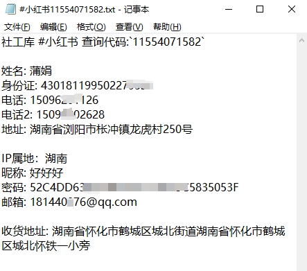 查询信息只限你本人阅读,不得在网络上传播!